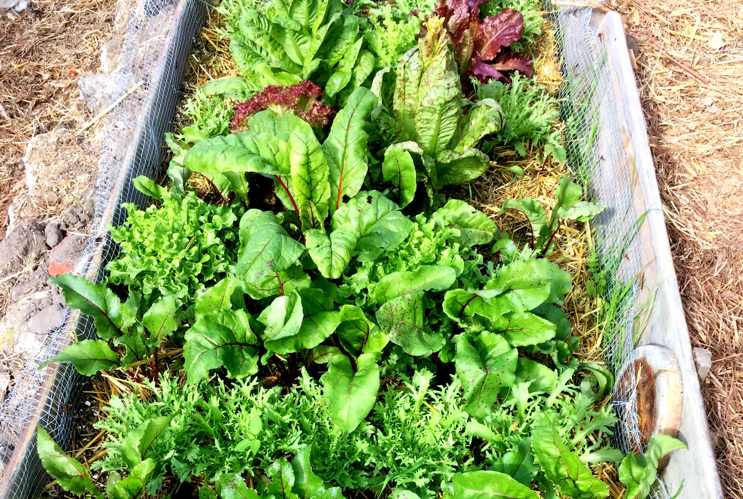 On a mangé des laitues, du kale, des broccolinis, des choux romanesco, des betteraves, du rainbow chard, des poireaux, des choux-fleur et des oignons nouveaux du jardin. On a aussi découvert tout un tas de wild greens : des herbes sauvages comestibles qui poussent dans le jardin sans qu’on ne les ai plantées. Mallow, Curly dock et Nasturtium ont été mes préférées. Certaines peuvent être mangées crues comme les fleurs de Nasturtium et les autres sont bouillies ou poêlées.